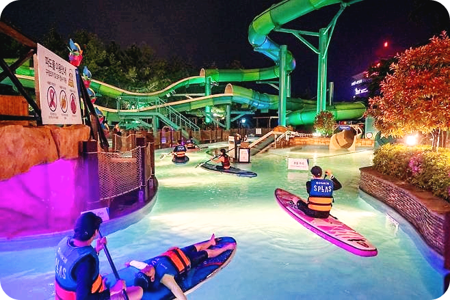 - 유수풀: 물살을 따라 떠내려가는 유수풀은 모든 연령대가 즐길 수 있는 인기 시설입니다.