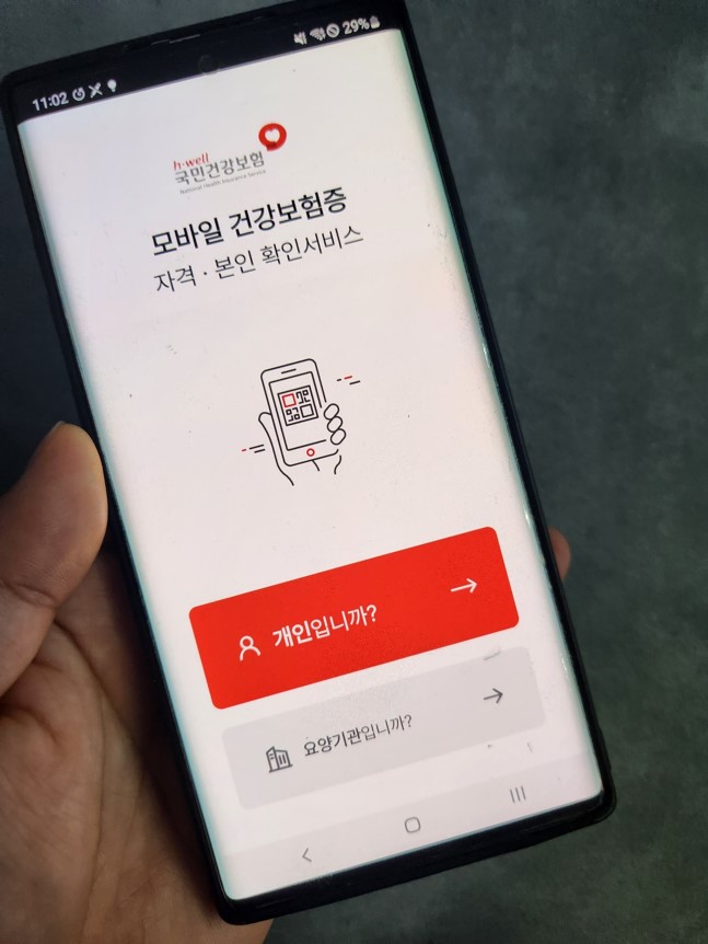 모바일에서 사용가능한 건강보험증을 발급받기 위해서는 먼저 앱을 스마트폰에 설치해야 합니다.