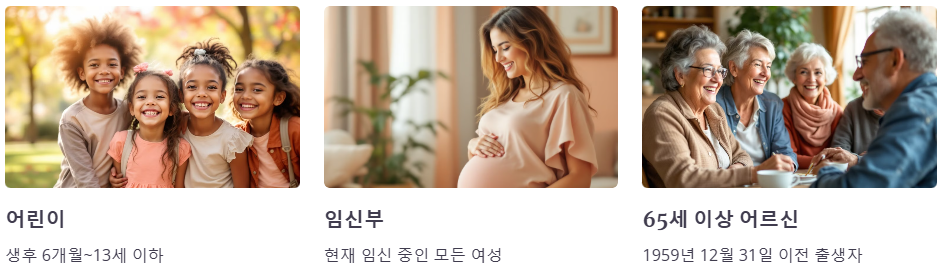 2024 ~ 2025년 무료 독감 예방접종 대상자는 다음과 같습니다.