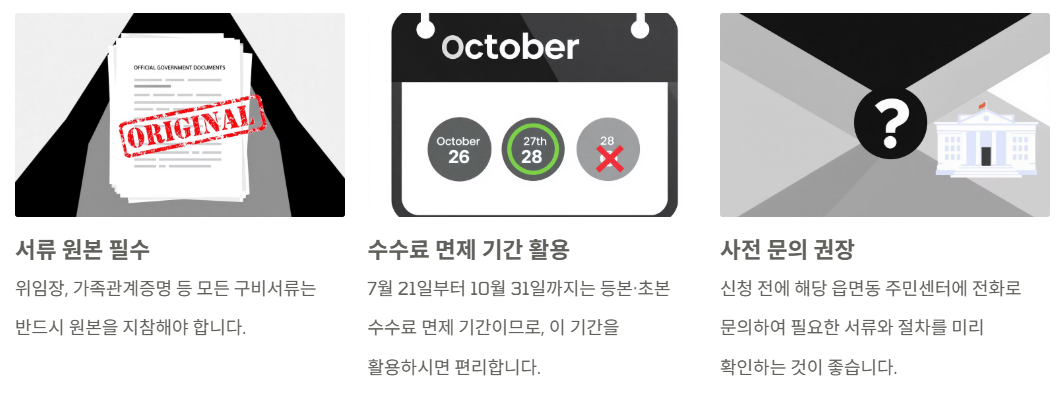- 등·초본 수수료 면제기간(7/21~10/31) 적극 활용
