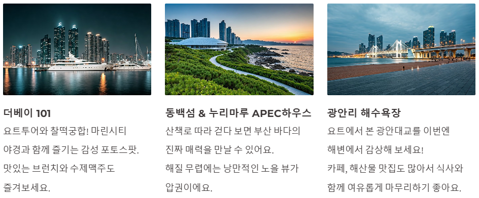 - 해운대 마린시티, 오륙도 등 부산의 랜드마크를 바다 위에서 감상