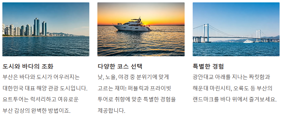 바다 위에서 즐기는 요트투어는, 마치 영화 속 주인공이 된 듯한 느낌을 줘요. 낮엔 하늘과 바다의 파노라마, 밤엔 도시 불빛이 반짝이는 특별한 풍경. 복잡한 일정 없이도, 부산요트투어 하나면 하루가 특별해질 수 있어요. 이번 주말, 바다와 함께 특별한 하루 어때요? 😄