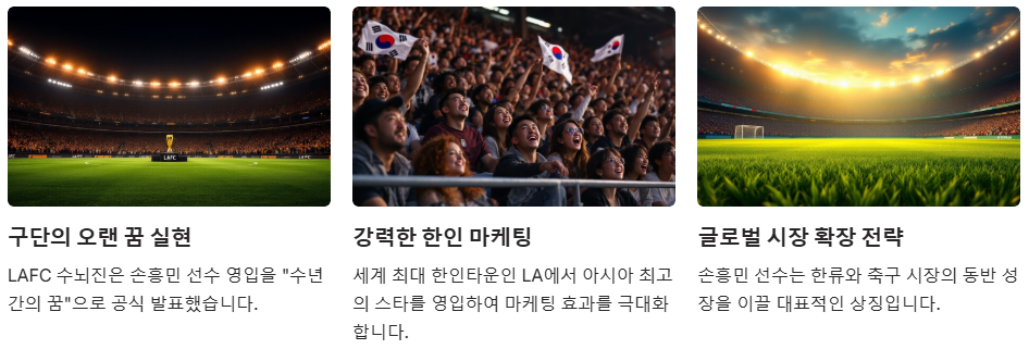 - LAFC의 글로벌 인지도, 아시아-미국 교민 성장, 리그의 전체 브랜드 가치에도 긍정적 파장이 예상됩니다.