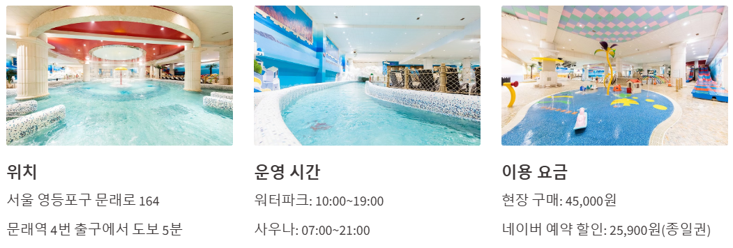 씨랄라 워터파크는 서울 영등포구 문래로 164에 위치해 있으며, 문래역 4번 출구에서 도보로 약 5분 거리에 있어 접근성이 매우 좋습니다. 워터파크와 사우나를 한곳에서 즐길 수 있는 복합 시설로, 도심 속에서 휴식을 취하기에 안성맞춤인 장소입니다.
