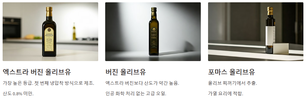 주요 올리브유 등급과 선택 팁