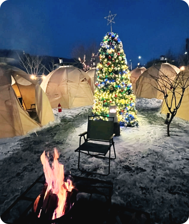 A5: 각 쉘터마다 준비된 모닥불에서 100분 동안 불멍을 즐길 수 있습니다. 장작과 오로라 가루가 포함된 기본요금으로 이용할 수 있습니다.