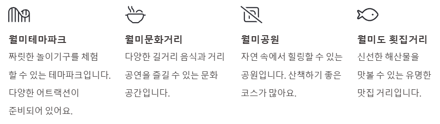 - 월미테마파크, 월미문화거리, 월미공원 등 핫플을 빠르고 쉽게 이동할 수 있어요.