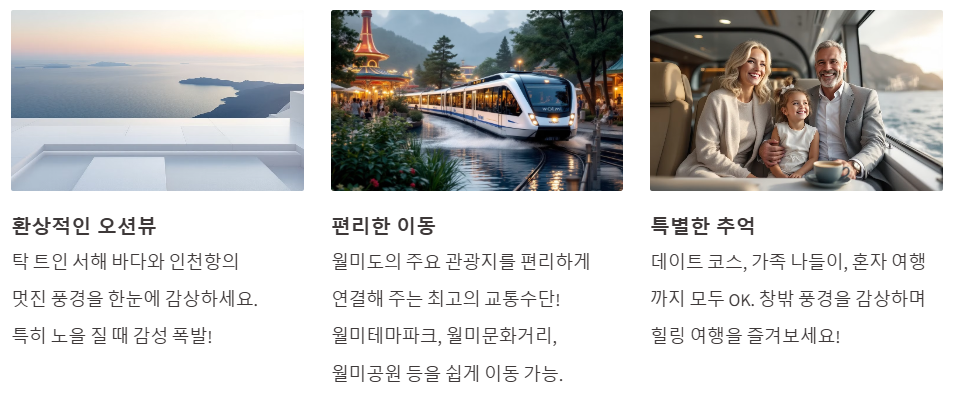 - "월미바다열차에서 바라보는 노을은 정말 환상적이었어요! "