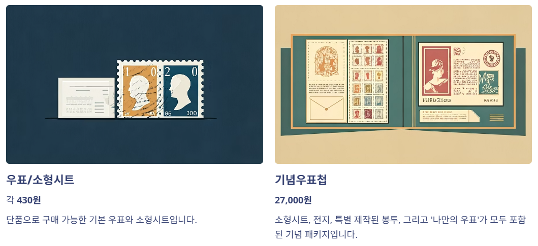 - 우표/소형시트: 각 430원