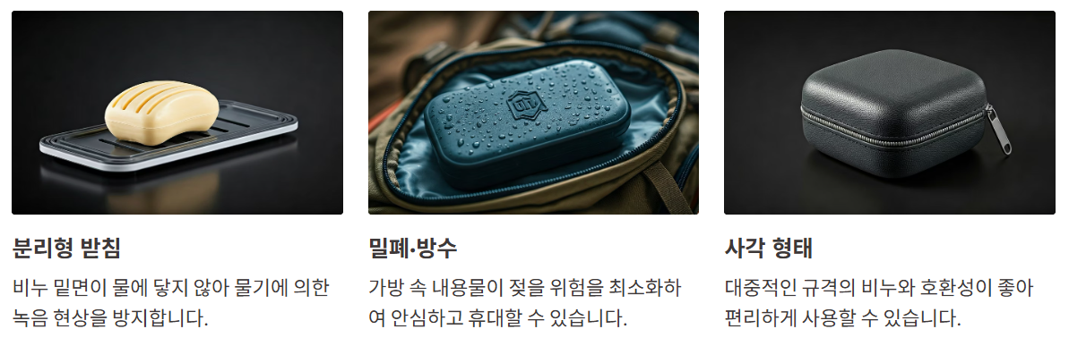 📌 작지만 디테일이 살아있는, 이동 생활에 최적화된 비누 보관 솔루션입니다.