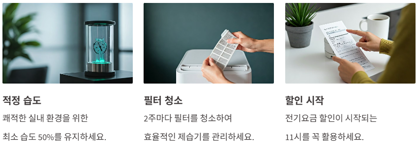💡습도 40% 이하로 설정하면 제습기 과부하 → 전기세 급등