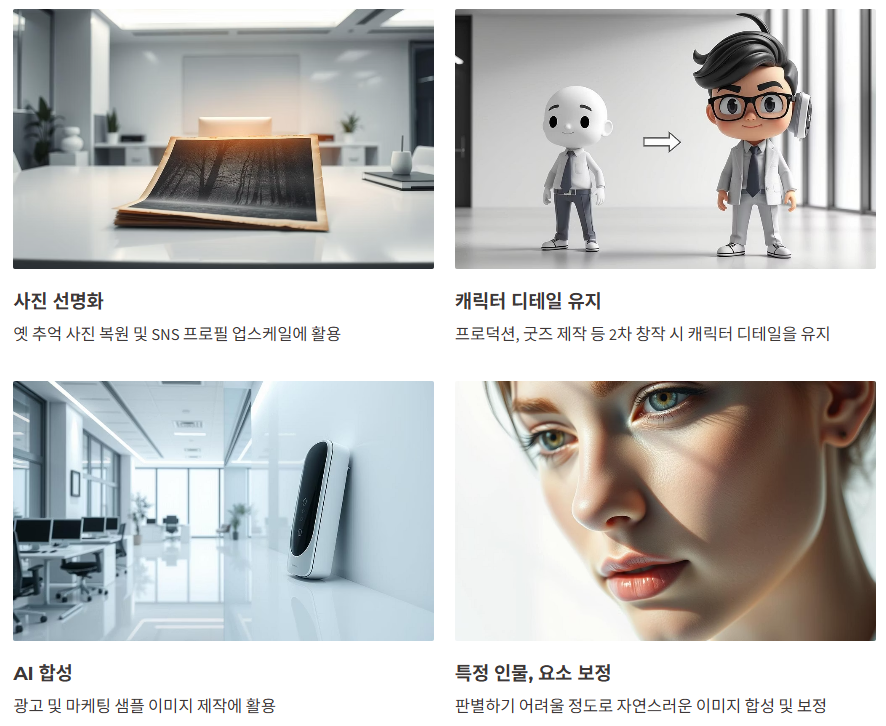 - 프롬프트(명령어) 입력 → 원하는 결과 촬영지시, 합성 요청 등 자유롭게 작성