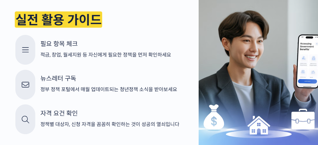- 정책별 대상자, 신청 자격 등 꼼꼼한 확인이 '1년 앞선 지원'의 출발점입니다.