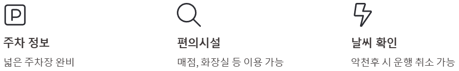👉 폭우나 강풍 등 악천후 시에는 운행이 중단될 수 있어요.