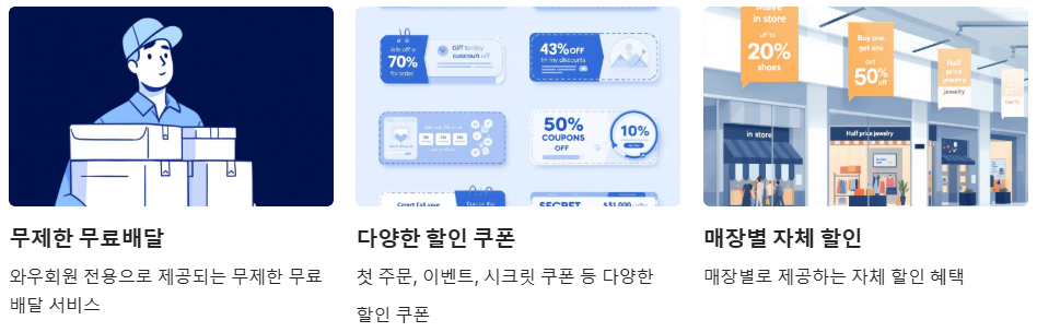 👉 물론입니다! 와우회원이 아니어도 쿠폰 할인, 즉시할인 등의 혜택은 받을 수 있습니다. 다만, 무료배달은 와우회원 전용 혜택입니다.