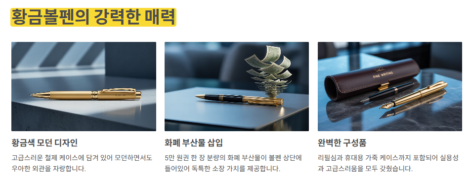 요즘 황금볼펜 에디션이 많은 사람들의 관심을 한 몸에 받고 있습니다. 한국조폐공사가 선보인 이 특별한 볼펜은 단순한 필기구를 넘어 ‘부(富)’와 ‘가치’를 상징하는 아이템으로 자리 잡았기 때문인데요, 이번 글에서는 황금볼펜 에디션이 왜 이토록 인기인지, 그리고 그 숨은 특별함까지 자세히 소개해 드리겠습니다.
