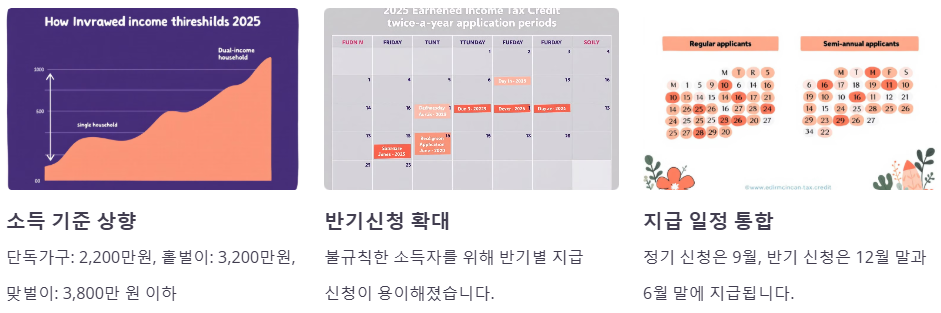 - 근로소득이 불규칙한 분들을 위해 반기별 지급 신청이 더 쉬워졌습니다.