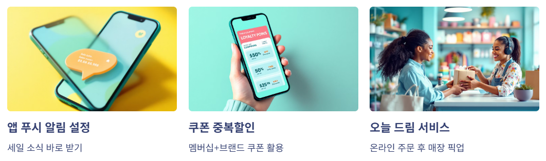 - 쿠폰 중복할인 꼼꼼히 챙기기: 멤버십 쿠폰, 브랜드 쿠폰 중복 적용 적극 활용