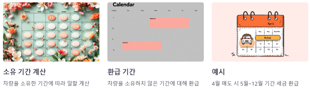 차량 매도 시, 이미 납부한 자동차세는 차량을 소유한 기간에 따라 일할 계산되어 환급됩니다. 예를 들어, 4월에 차량을 매도했다면 5월~12월 기간에 해당하는 세금을 환급받을 수 있어요. 환급은 차량을 소유하지 않은 기간에 대해 지급됩니다.